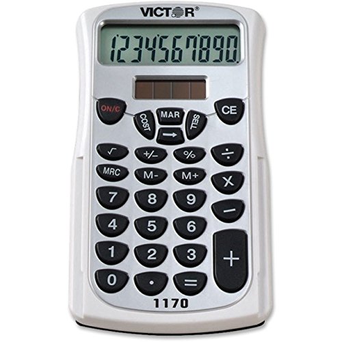10 digit handheld business calculator is ideal for in the office or on the go. Features a Large, easy-to-read LCD display. This calculator has a stylish contemporary design and feature-loaded functionality. Cost/sell/margin keys make for quick and easy profit calculations (enter two variables and the third automatically appears). other functions include: backspace Key, 3 Key independent memory, percent Key, square root Key, change sign Key and automatic constants. Includes a slide-on Protective hard shell case. Operates on Hybrid power (solar with battery backup). 2 year manufacturer's standard warranty.Feature