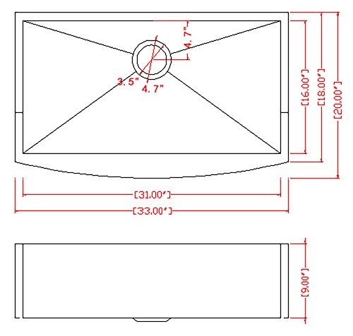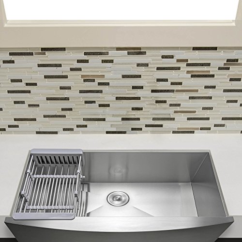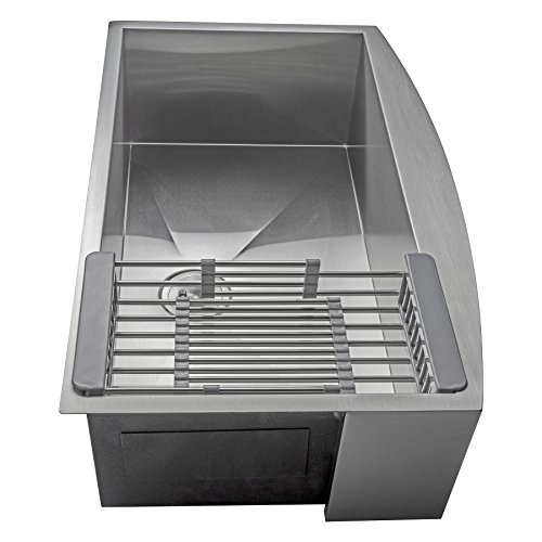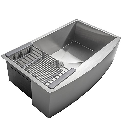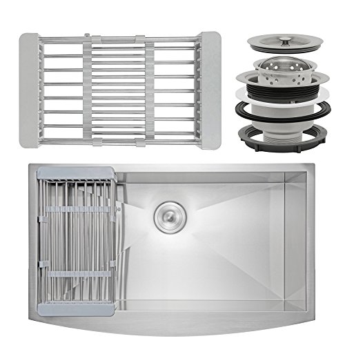Firebird 33" x 20" x 9" Apron Farmhouse Handmade Stainless Steel Single Bowl Kitchen Sink w/ Drain Strainer Kit Adjustable Tray
