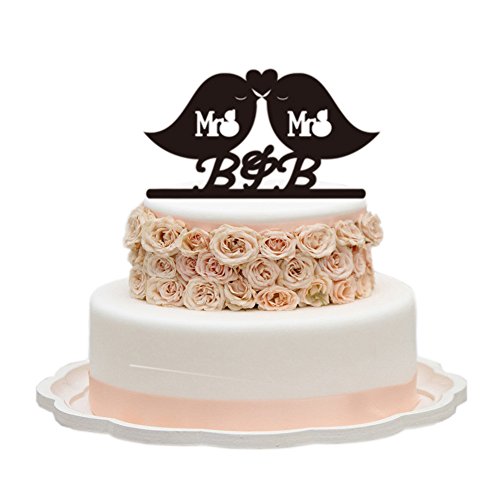 LOVENJOY Mrs and Mrs Lesbian Same Sex Birds Wedding Cake Topper w/ Gift Box, Black