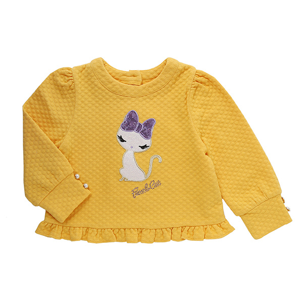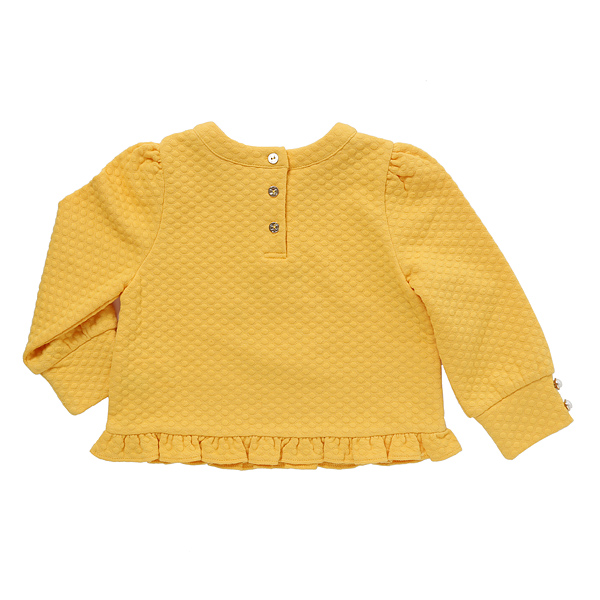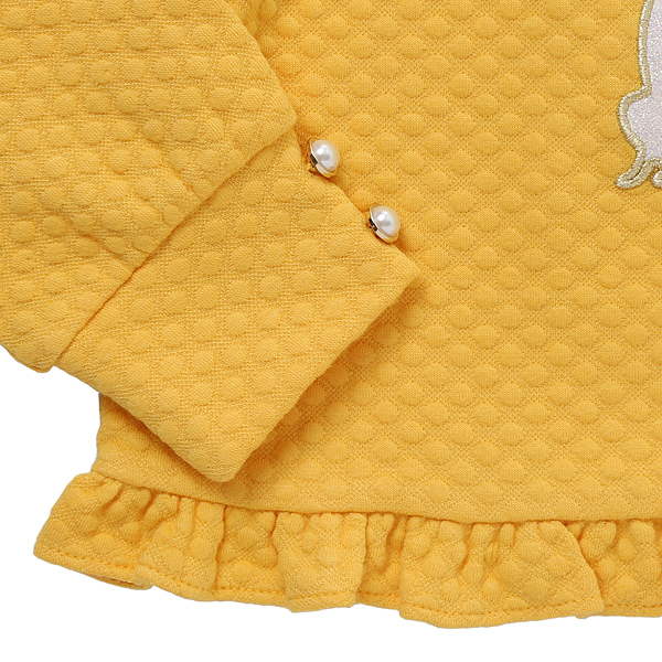 상품설명 옐로 프릴 탑입니다. 봉긋한 퍼프소매라인에 진주단추가 들어간 소매로 레트로 무드를 완성했구요. 밑단에 들어간 프릴로 사랑스럽게 연출 가능합니다.