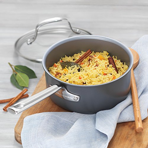 In designing the Emeril Lagasse Hard Anodized Cookware, I thought about what I look for in pots and pans that I use both at home and in my restaurants: durability, dependability, and performance. Serious cooks will love the way the riveted handle fits the hand well and stays cool to the touch. The heavy-gauge aluminum means that these pans will heat up quickly and evenly, so you can count on even browning and cooking. These pans will go from stovetop to oven without missing a beat, and their tempered-glass, see-through lids allow you to keep an eye on what’s inside without losing precious steam. And, hey – there’s no need to worry about clean-up with these pans: the durable, scratch-resistant nonstick coating means that even the stickiest foods will wipe right off. Better yet – these pots are safe to go right into the dishwasher as well. What’s not to love? This is one of my favorite, most often-used pans in my kitchen, the Emeril Lagasse Hard Anodized 2 quart saucepan. From making rice for the family to making soup, heating leftovers, steaming vegetables or even making mashed potatoes, this pan will get a lot of use!Feature