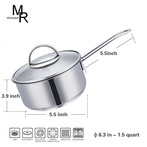 Luna Collection LN-1610 18/10 Stainless Steel 1.5 Quart Saucepan Unsurpassed Heat Distribution
