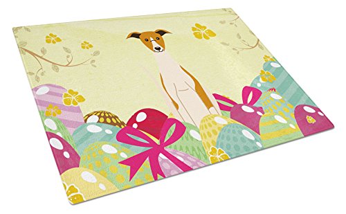 Caroline's Treasures Easter Eggs Whippet Glass Cutting Board Large, Multicolor