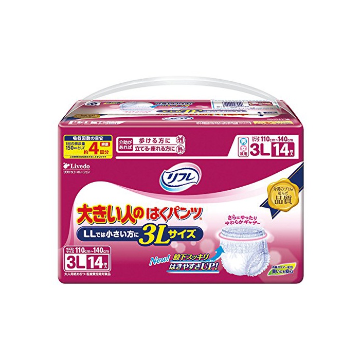 원본상품명: リフレ 大きい人のはくパンツ 3Lサイズ 14枚入【ADL?分:介助で?ける方】