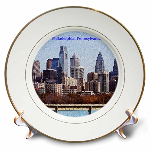 3dRose cp_55313_1 Philadelphia Skyline Textured Porcelain Plate, 8-Inch
