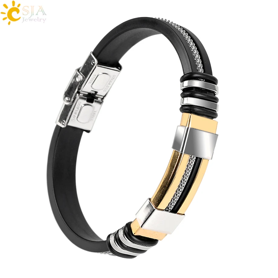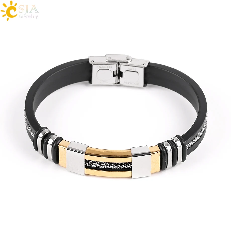 Product Name:Men Stainless Steel Wristband Silicone Bracelets