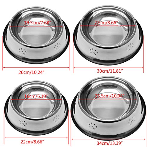 Features: Dog paws design is very cute Made of top quality stainless steel Sturdy enough Specially designed with non-skid bottom Strong enough Bite and shock resistance,It can be used to hold water or food Suitable for both home and travel use A must-have for your beloved pets durable and convenient to use Safe and non-toxic for your beloved pets Specification: Material: Stainless steel Size details: Size Lower mouth diameter Upper mouth diameter Height XS 22cm/8.66' 16cm/6.30' 4.8cm/1.89' S 26cm/10.24' 19.5cm/7.68' 5.4cm/2.13' M 30cm/11.81' 22cm/8.66' 7cm/2.76' L 34cm/13.39' 25.5cm/10.04' 7.5cm/2.95' Color: Silver Quantity: 1Pc Note: 1.Please allow 1-3cm error due to manual measurement. pls make sure you do not mind before you bid. 2.Due to the difference between different monitors, the picture may not reflect the actual color of the item. Thank you! Package includes: 1 x Pet Bowl (without retail package) 0