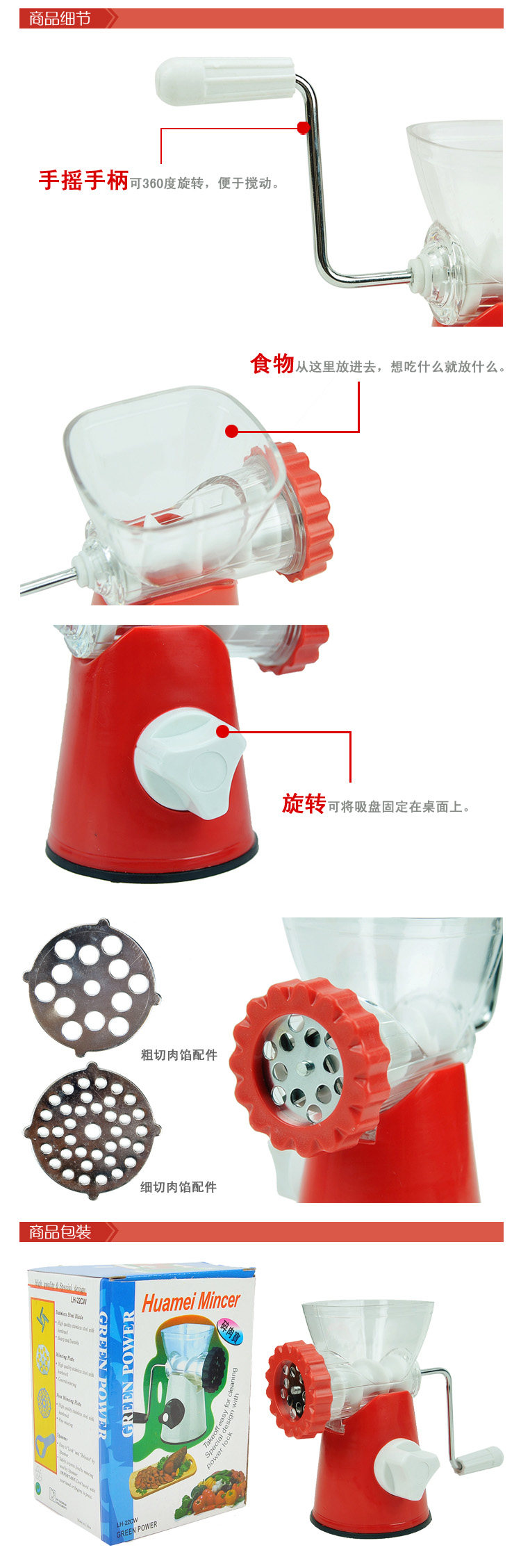Bao is the use of multi-purpose household meat made from high quality plastic material, beautiful and durable, accessories simple, easy to dismantle and easy to clean, and comply with food safety standards, safe and reliable. Applicable to a variety of food pieces, such as: any meat, vegetables and so on. Easy to clean, especially designed suction cup base.