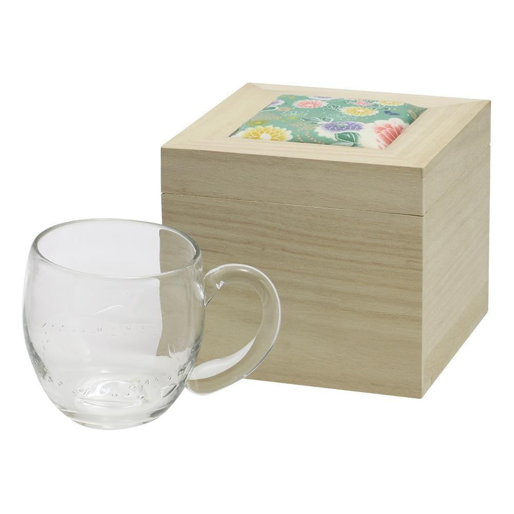 ちりめん木箱に入った涼しげなガラス製のマグカップ。ギフトにもぴったりです♪