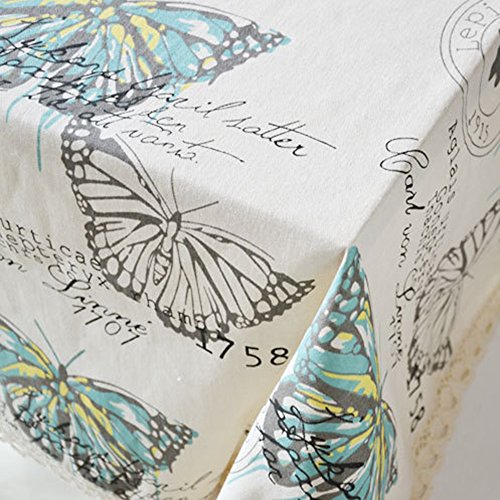 -. Title : ColorBird Pastoral Teal Butterfly Home Decorative Lace Linen Tablecloth Cotton Canvas Fabric Kitchen Dinning Table Cover