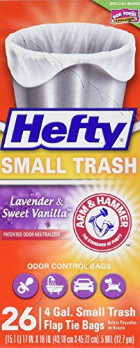 Hefty Small Trash Bags (Odor Control, Lavender Sweet Vanilla, Flap Tie, 4 Gallon, 26 Count)