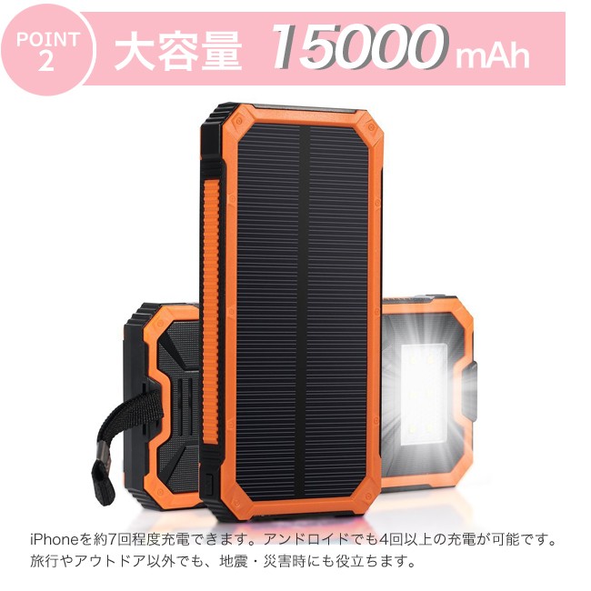| 商品名 | ソーラー モバイルバッテリー 15000mAh |