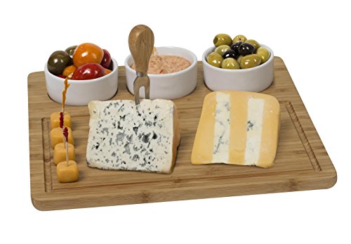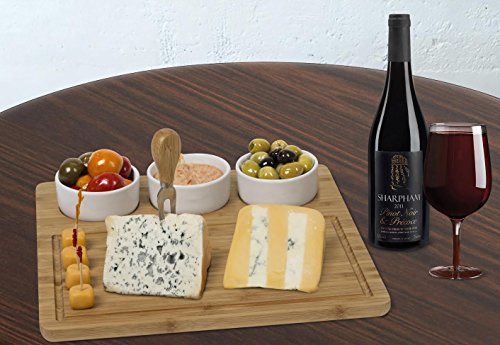 House Ur Home 100% Natural Bamboo Cheese Board And meat Serving Platter - With 3 Removable Ceramic Bowls set For Salads And Appetizers. Perfect Gift Idea Life Time Warranty