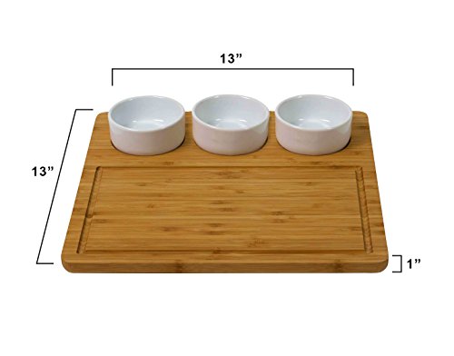 PERFECT FOR GET TOGETHERS Planning To Hang Out With Your Family Outdoors? Are You Thinking Of Hosting A Party This Bamboo Serving Platter Is Just The Right Tool For You. With 3 Removable Ceramic Bowls. Serving Those Salads and Appetizers Wont Be A Problem.