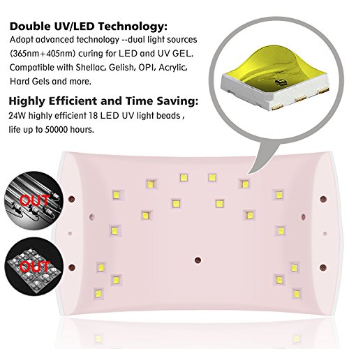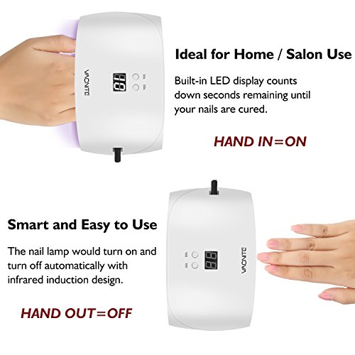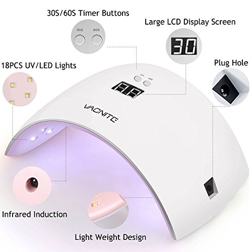 Vacnite Nail Lamp, 24W LED UV Nail Dryer Curing Lamp, With 30S/60S Timer Setting and Automatic ...