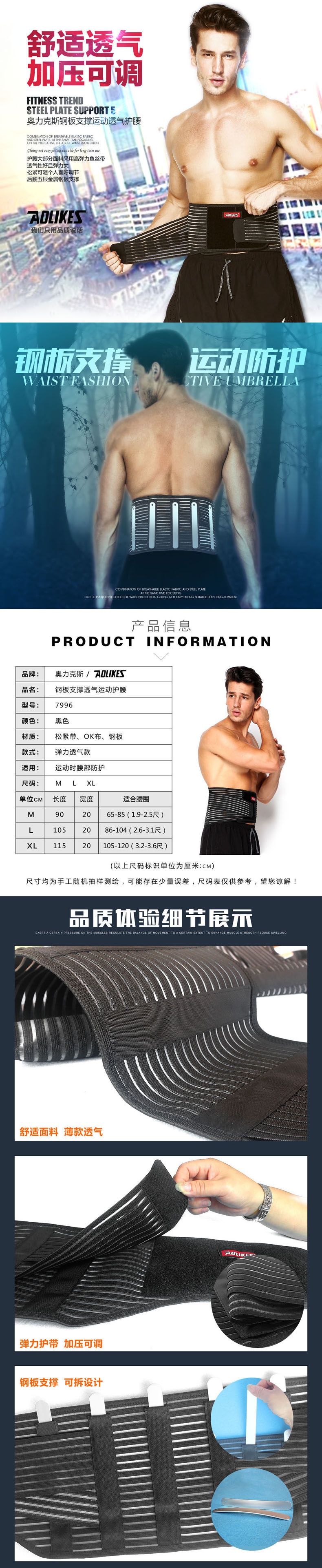 夏季运动护腰带 钢板支撑腰托腰围跑步透气男女士