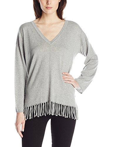 Long sleeve v neck fringe poncho top
