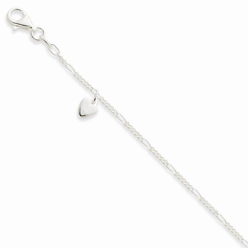 -. Title : Solid 925 Sterling Silver 10inch Polished Dangling Love Hearts on Figaro Link Anklet Bracelet