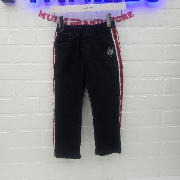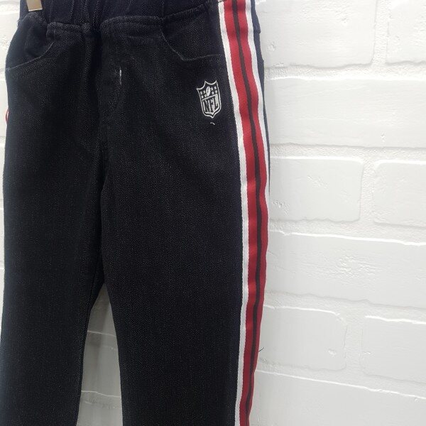 테잎 장식 백기모 일자핏 데님 팬츠 신축성이 좋아 착용이편함 앞NFL엠블럼 직자수가 포인트 다양한 상의와 코디 가능(뒤집어 단독 세탁)