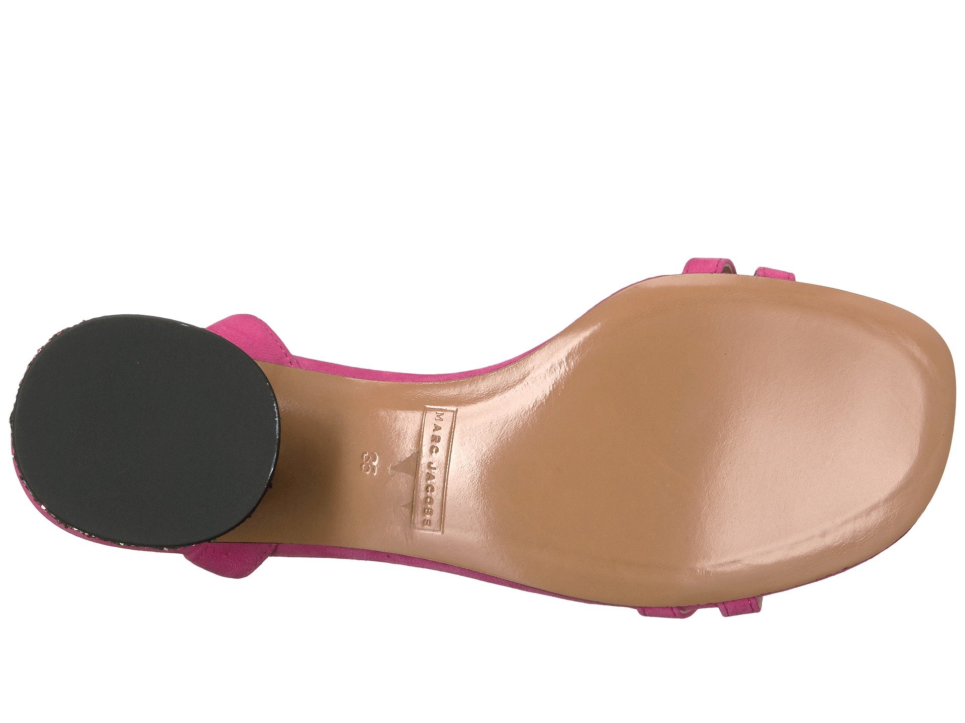 | Product Information SKU: #8859842Simplicity crashes into sophistication when you put on your Marc Jacobs™ Olivia Strap Sandal.Suede leather upper.Ankle strap with adjustable buckle closure.Open toe silhouette.Leather lining.Leather footbed with embossed logo.Leather sole.Imported.This item may ship with an attached security tag. Merchandise returned without the original security tag attached or a damaged tag may not qualify for a refund.Product measurements were taken using size 36 (US Women's 6), width M. Please note that measurements may vary by size.Weight of footwear is based on a single item, not a pair.Measurements: Heel Height: 1 3?4 in Weight: 7 oz Platform Height: 1?4 in |