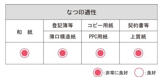 ※コート紙、アート紙等、朱の油を吸収しにくい紙面へのなつ印や、朱の油の付着量が多い場合は、乾燥が遅くなることがあります。また、目の粗い紙では若干にじむことがあります。