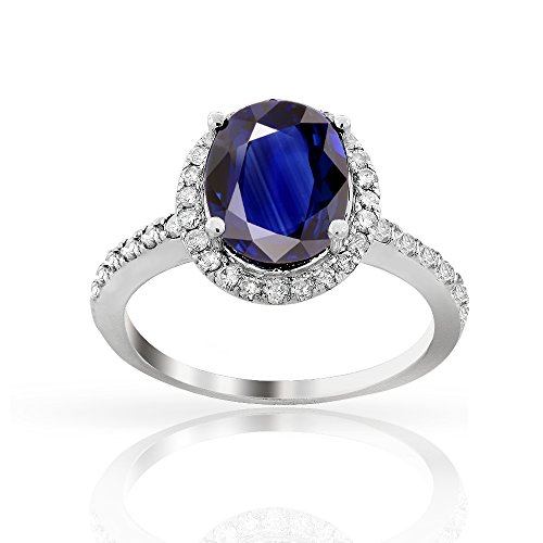 -. Title : 3.00ctw Genuine Sapphire and Diamond Halo Ring in 14K White Gold, Oval