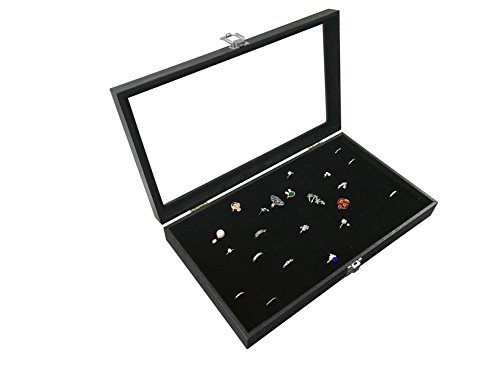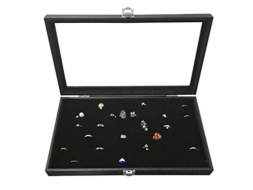 -. Title : Sodynee® Glass Top Black Jewelry Display Case 72 Slot Ring Tray