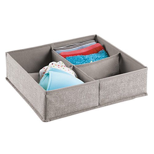 - COMBO PACK OF 2: Fabric Drawer Organizers with 4 compartments each create coordinated storage for your drawer, shelf and closet space