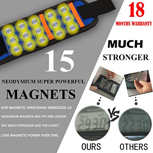 - Super Strong Magnets:This Magnetic Wristband embedded with 15 permanent powerful Neodymium Magnets It guarantee for higher efficiency and the screws won't fall off the wristband while moving your hand.