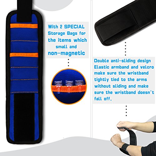 - Perfect Gift Choice:This Magnetic Wristband can improve your efficiency and protect your wrist from injury.It's a perfect gift choice for Handyman,Husband,Father,Guys,Boyfriend,Man and any other people who into DIY projects.