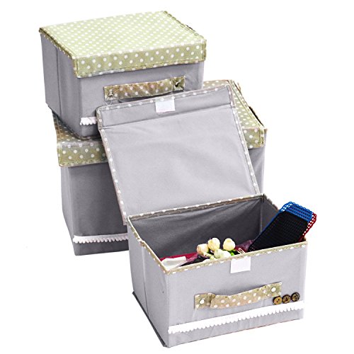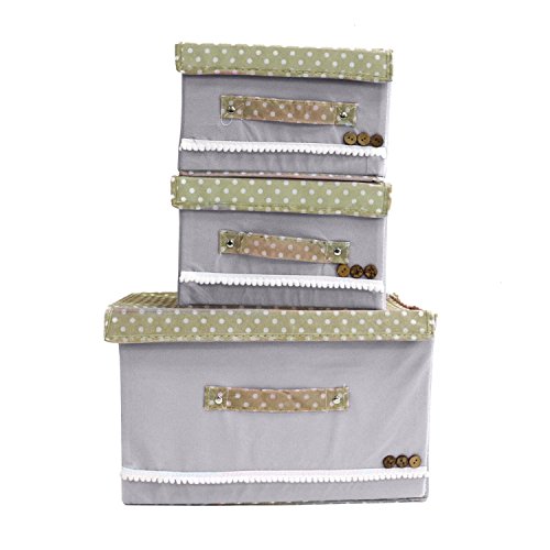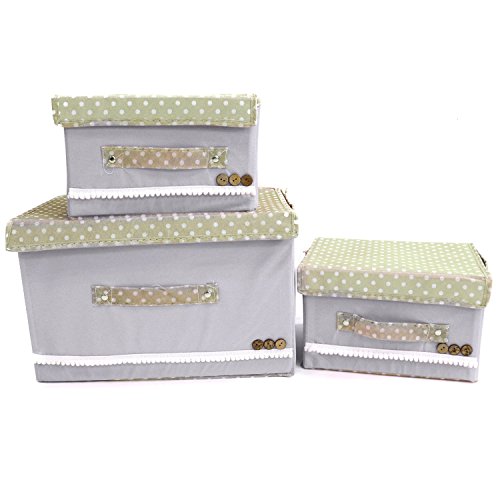 Buorsa Foldable Storage Box Holder Container Organizer Storage Bins with lids and Handles For office,magzines,books,Kid's clothings,towels,Snacks ,1 Large + 2 Small