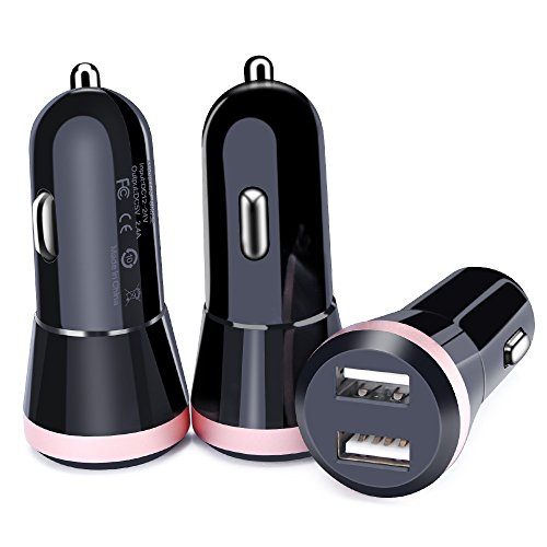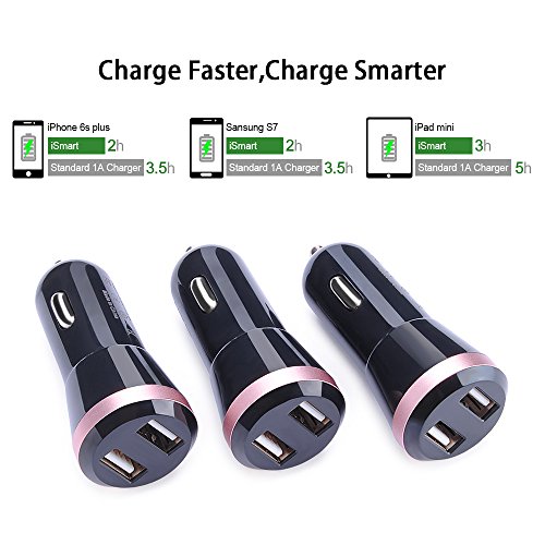 USB Car Charger, CableLovers 3Pack 2.4A Rapid Dual Smart USB Car Charger Power Adapter for iPhone 7 7plus 6 5 SE, Samsung Galaxy S7 S6 edge, iPad, LG G5 G4, Motorola, Blackberry, BLU, MP3