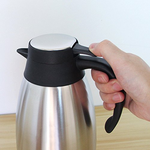 EASY TO USE AND CLEAN:The silicone handle is very sturdy and holds its position, making the carafe easy to move and pour.The thumb-operated lid lets you use with one hand and the large mouth opening makes filling and washing very convenient