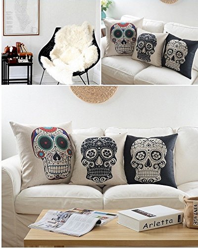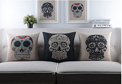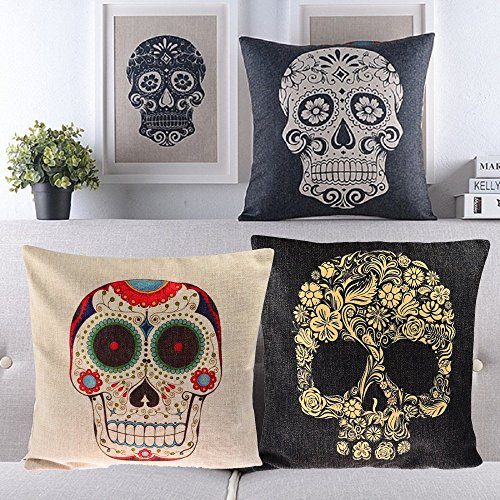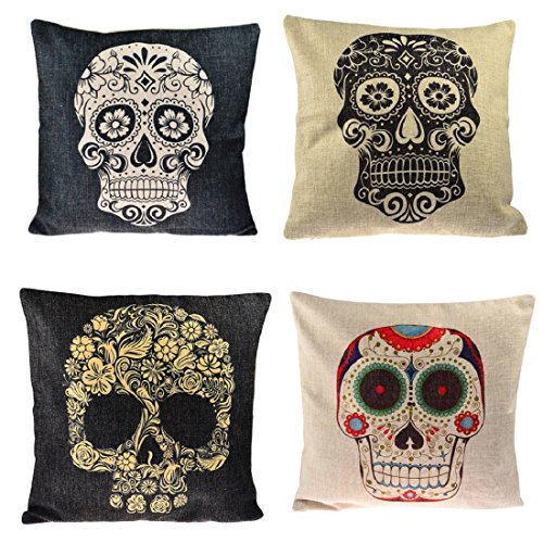 Throw Pillow Covers,YIFAN 4Pcs Mexican Day of the Dead Sugar Skull Cotton Linen Square Shaped Decorative Sofa Chair Couch Pillowcase Pillowslip 43*43cm
