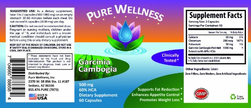 -. Title : Pure Wellness, Garcinia Cambogia, 500mg, 60% HCA, 60 Capsules, #1 Best Selling Weight Loss Formula As Recommended by Doctors