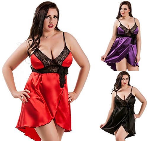 -. Feature : Atemberaubendes Satin-Babydoll mit Spitze an der Brust und Rock im Umschlag-Stil. / Dieses der Figur schmeichelnde Stück verfügt außerdem pber einen sexy kurzen Saum an der Vorderseite, verstellbare Stretch-Träger und -Brust und eine verspielte Spitzen-Schleife. Wird mit passendem Tanga geliefert. / Für Our-Models-Größen (Brustumfang, Hüfte, Taille, Cup-Größe) bitte Abbildung links prüfen / Made In Eu. Top Quality / Nine X' wurde bei den diesjährigen British Plus Size Awards von den Verbrauchern als beste Dessous-Marke nominiert,und präsentieren unsere Kollektionen auf verschiedenen Modenschauen