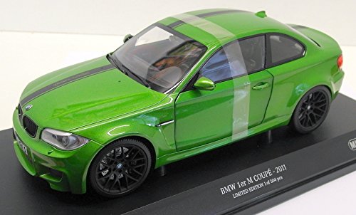 -. Title : BMW 1er M Coupe, metallic-grün/Decorated, 2011, Model Car, Ready-made, Minichamps 1:18