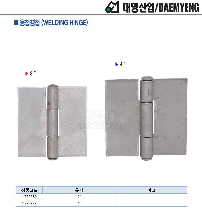 HINGE Welding Hinges 3in 3T BOX 20 Stainless Steel DAEMYENG WELDING