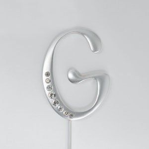 Oasis Supply 3-1/2-Inch Cupcake/Cake Decorating Ornament with Some Beautiful Clear Crystals, Large, Monogram Letter "G", Silver