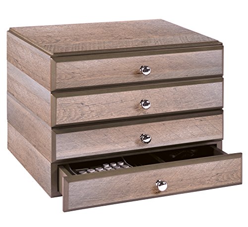 Bindertek Stacking Wood Desk Organizers, 4 Supply Drawer Kit, Driftwood