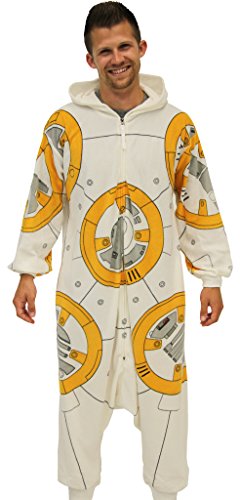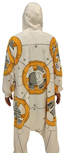 -. Brand : Star Wars -. Color : White -. Department : mens -. Feature : Material: 100% Polyester / Color: Off-White / Fit: Standard Men's / Officially Licensed -. ProductGroup : Apparel -. ProductTypeName : ADULT_COSTUME -. Title : Star Wars BB8 Droid Adult Polyester One Piece Zip Up Pajama Kigurumi