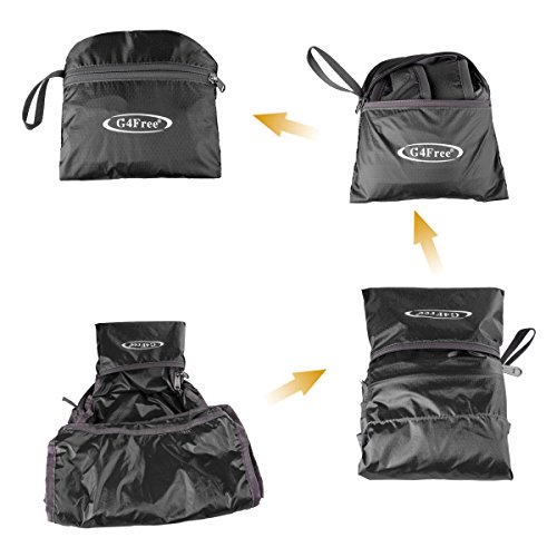 The G4Free packable backpack is made of high quality water and tear resistant nylon material, with abrasion resistant SBS metal zipper and reinforced more than 14 places with rope process. Like a sandwich size after being folded, easy to carry,convenient and practical. It fits into an ultra-compact pouch, so you can easily pack it in your suitcase for use at their destination as an extra bag for the trip. This compact, lightweight backpack is the perfect companion when you are out and about. It will be a fantastic necessity for no matter outdoor sports or leisure activities in or out of the city.Perfect for day trips,vacation,travel,day hikes,school,camping and shopping,etc.