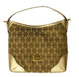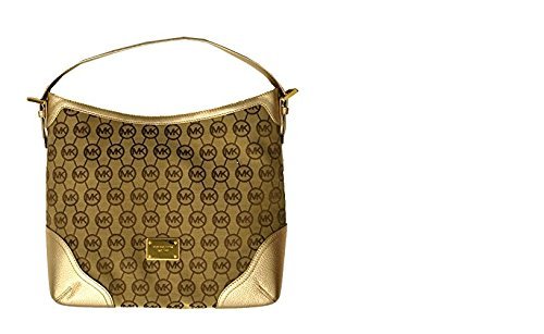 -. Title : Michael Kors MK Signature Millbrook Large Shoulder Bag Handbag in Beige/Ebony/Gold