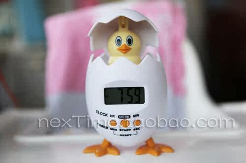 Alarm time is reached or when the countdown ends, chicks will hatch, giggle quack barking, according to the chicks back into the shell, the alarm stops.