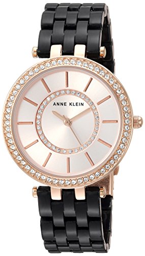 (Anne Klein)/Accessories/Luggage, Bags Travel/DIRECT FROM USA/Anne Klein Women's AK/2620BKRG Swarovski Crystal Accented Rose Gold-Tone and Black Resin Bracel...