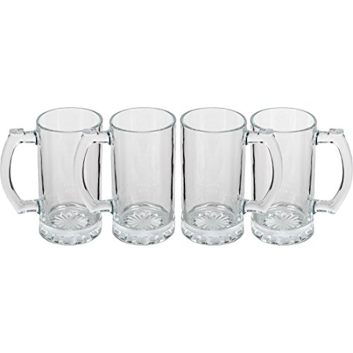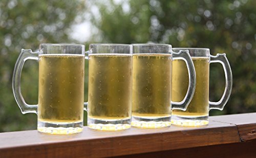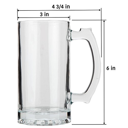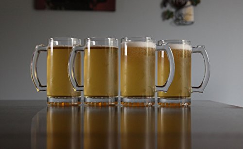 Product Description Holding 16 ounces each, these heavy mugs are shaped for serving beer in traditional style. They're made of thick glass, so you can frost them in the freezer and then use them to keep beer cold to the last swig. Though the mugs' insides are perfectly round, the exteriors have 10 facets. Perfect for root beer floats as well as beer, the mugs measure 9-1/8 inches high and 3-3/8 inches in diameter. They're durable and dishwasher-safe. 0