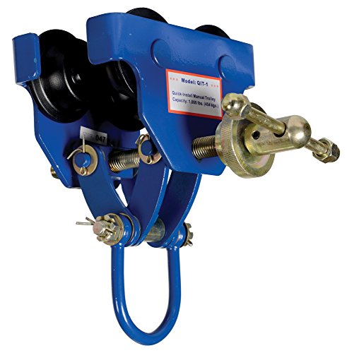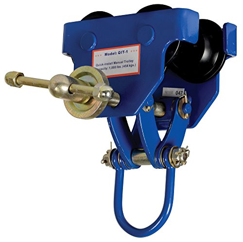 Vestil QIT-1 Steel Quick Install Manual Trolley with Powder Coat Finish, 1,000-lb. Capacity, 3 - 5" Beam Flange Width, 6-3/4" Headroom