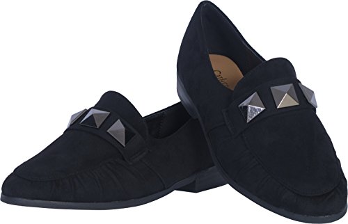 Make a statement with these women's slip on loafers by Catherine Malandrino. Look your best, with a fashionable yet functional loafer. Our moc toe stitching and studded vamp provides a traditional, stylish design and a casual look you will love. - Perfect fit, designed to fit your feet, with no heel slippage, this shoe was meant for a long day on your feet