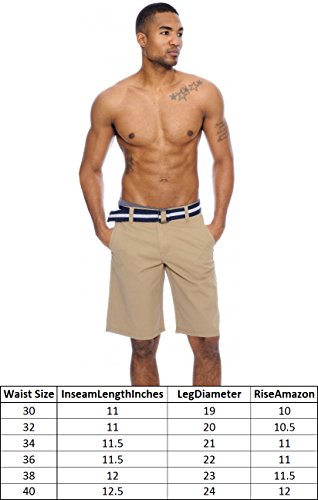-. Feature : BELT INCLUDED: Comes with a striped belt that compliments the chosen color. Simple double-D ring closure. / POCKETS: Enjoy the classic pockets most short designs share, two in the front and two in the back. / QUALITY: Made from 100% Cotton, the quality and comfort awarded to these shorts will make it a favorite item to wear. / CASUAL: These shorts will go perfect with any outfit, all while maintaing extreme comfort due to the quality of materials used. Don't miss the chance to get a color that will match any outfit you own! / SIZE and COLOR: Enjoy over 10 different colors in 6 different sizes. Ranging from waste size 30 to 40 in darks and lights!