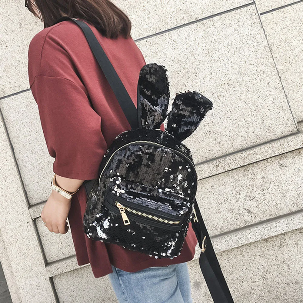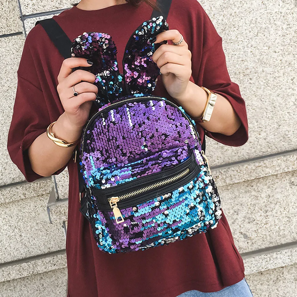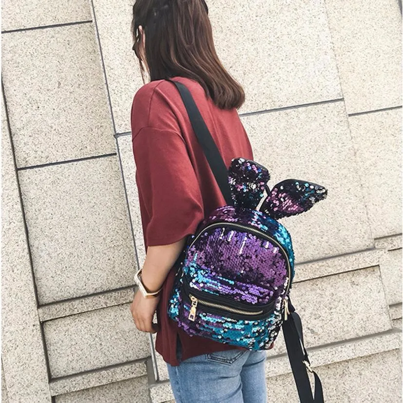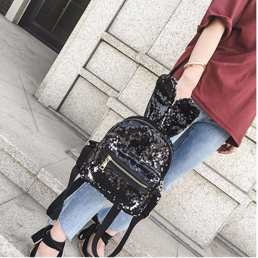 Sequins decoration:Cute backpack with ears